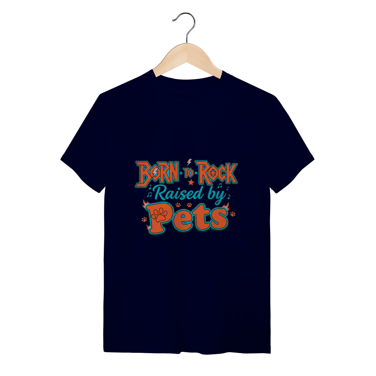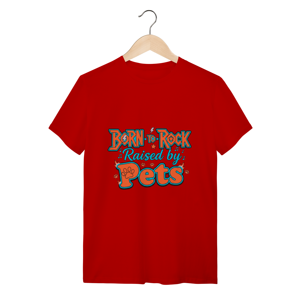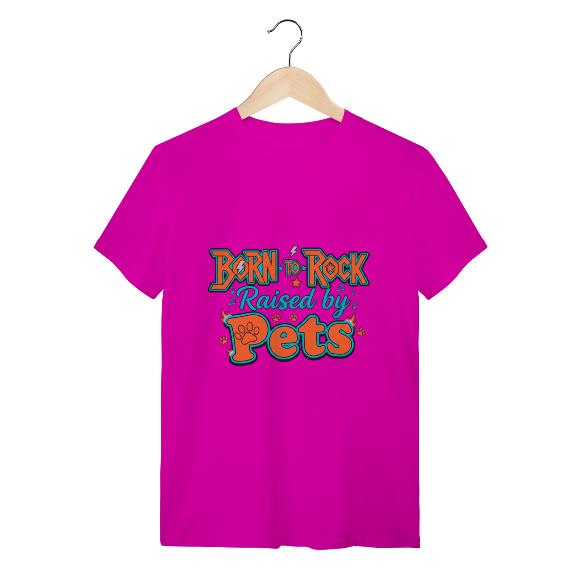 A Camiseta Born to Rock – Raised by Pets é o manifesto definitivo da nossa marca, unindo uma tipografia vibrante e cheia de atitude ao orgulho de ser um tutor dedicado.