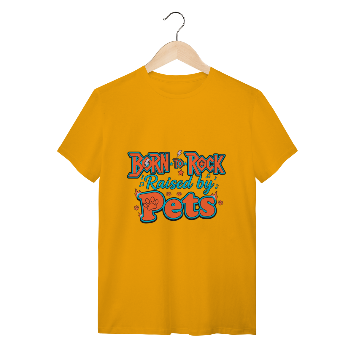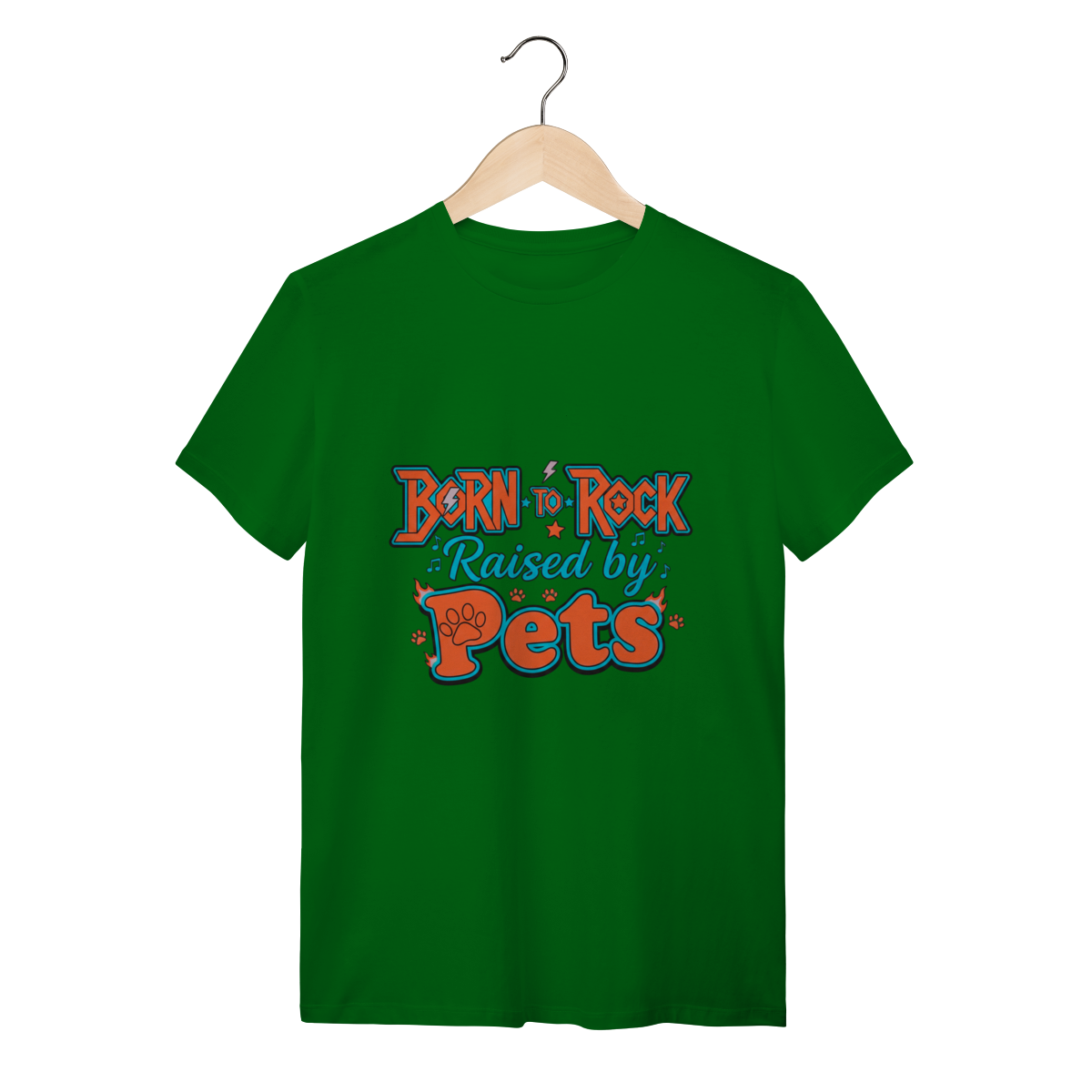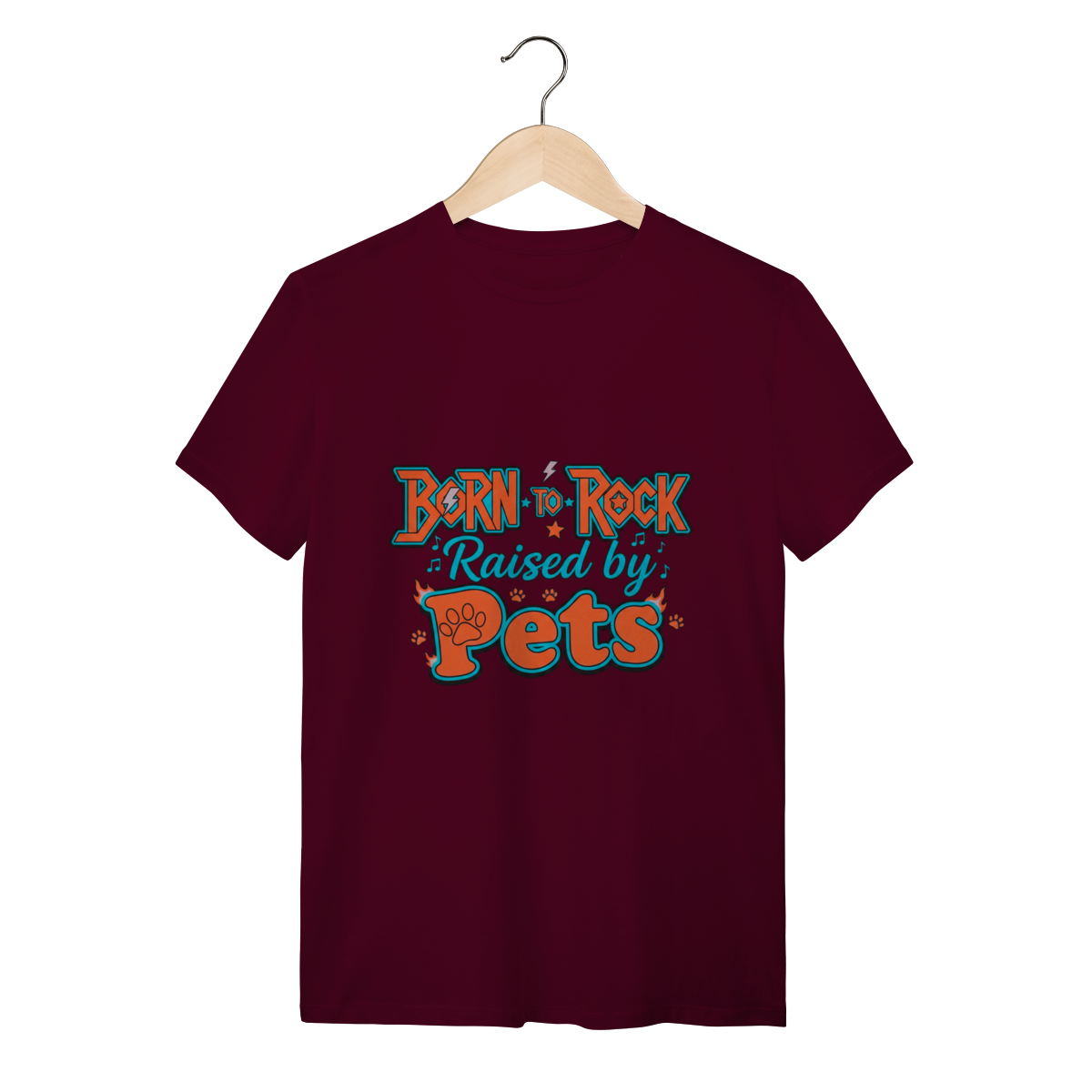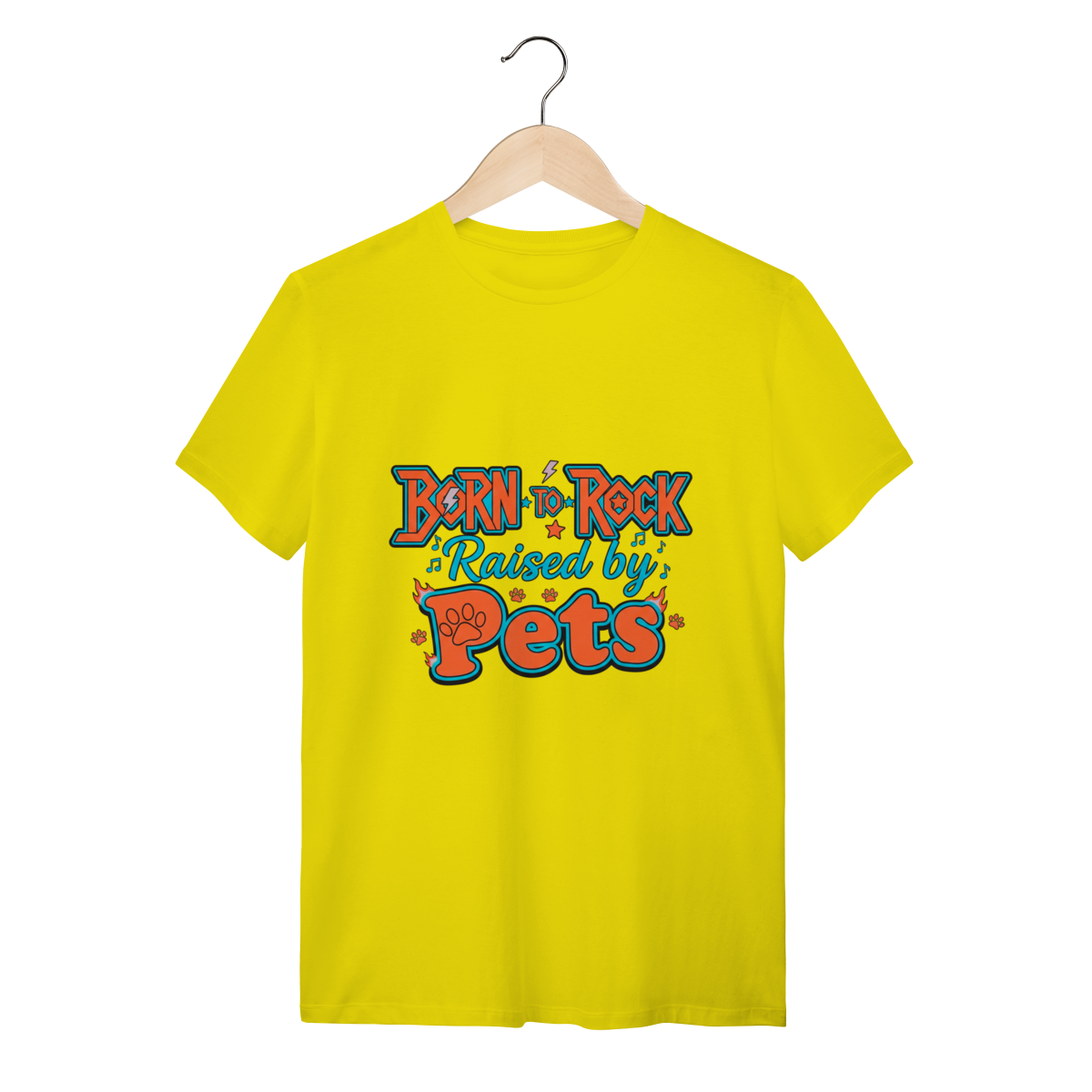 A Camiseta Born to Rock – Raised by Pets é o manifesto definitivo da nossa marca, unindo uma tipografia vibrante e cheia de atitude ao orgulho de ser um tutor dedicado.