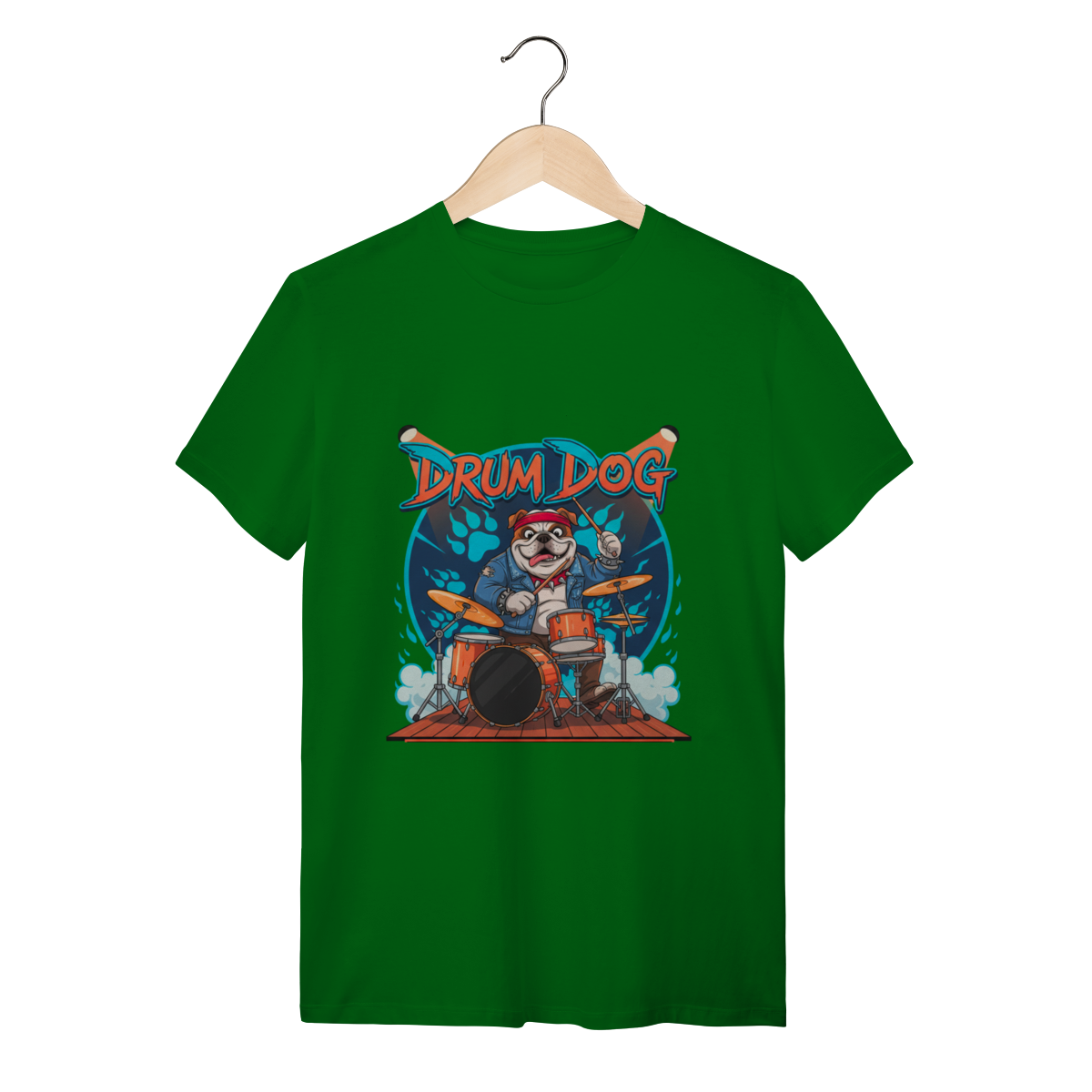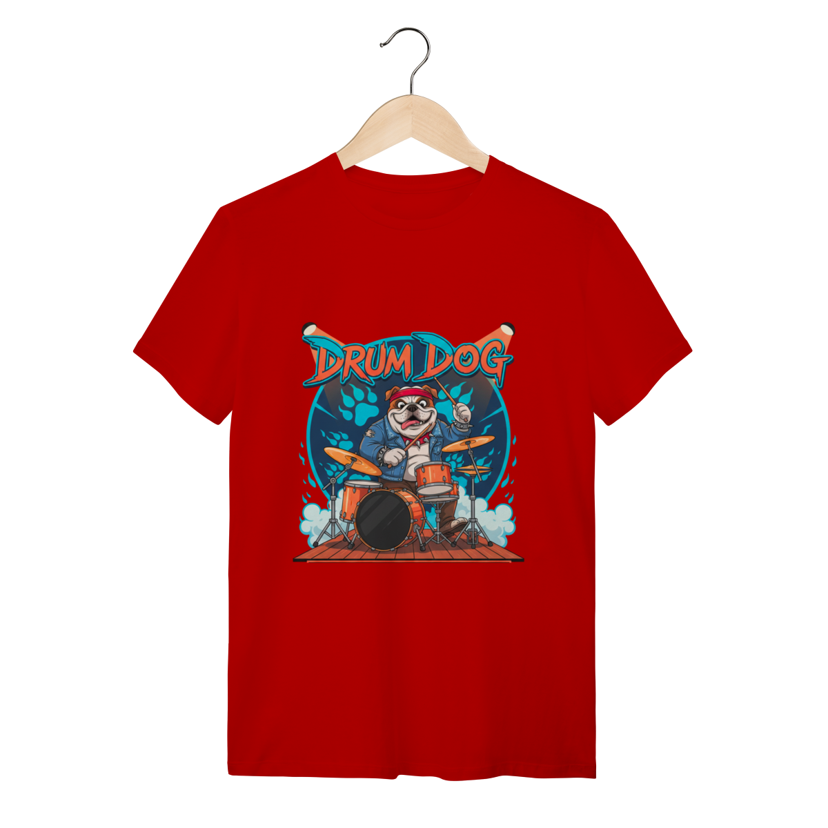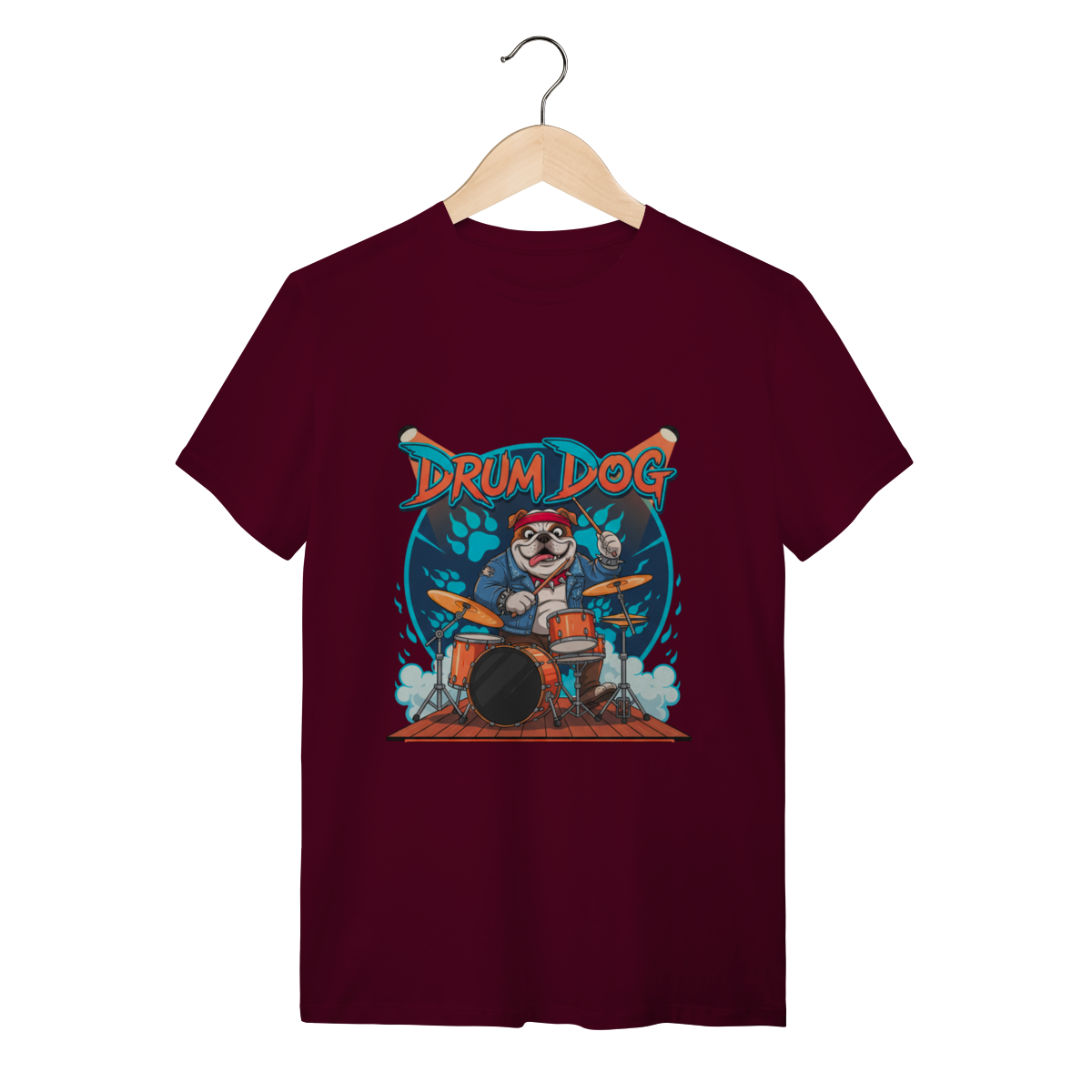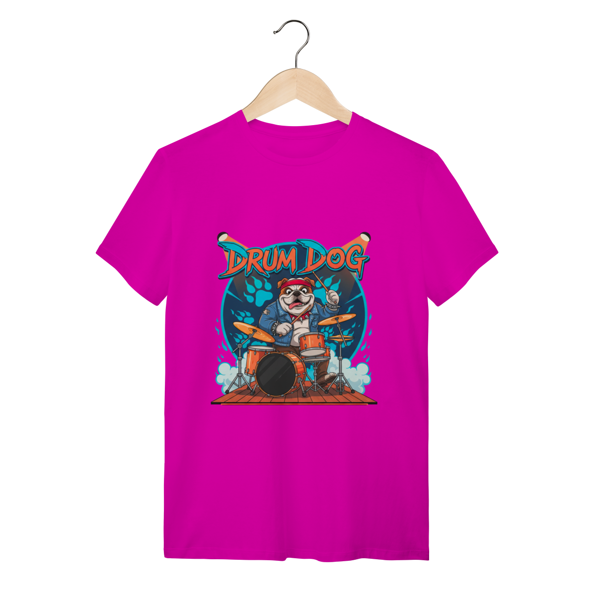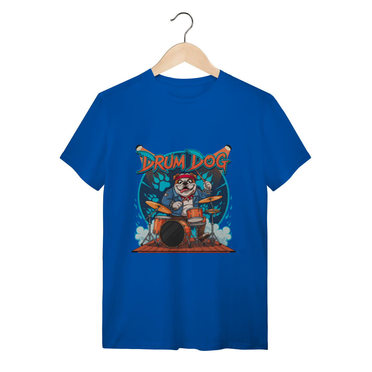 Esta peça exclusiva da coleção Pets Rock traz um Bulldog Inglês cheio de garra, dominando as baquetas em um solo épico sob os holofotes. É a escolha perfeita para quem busca uma camiseta personalizada de cachorro que une paixão pela música e design de alta qualidade.