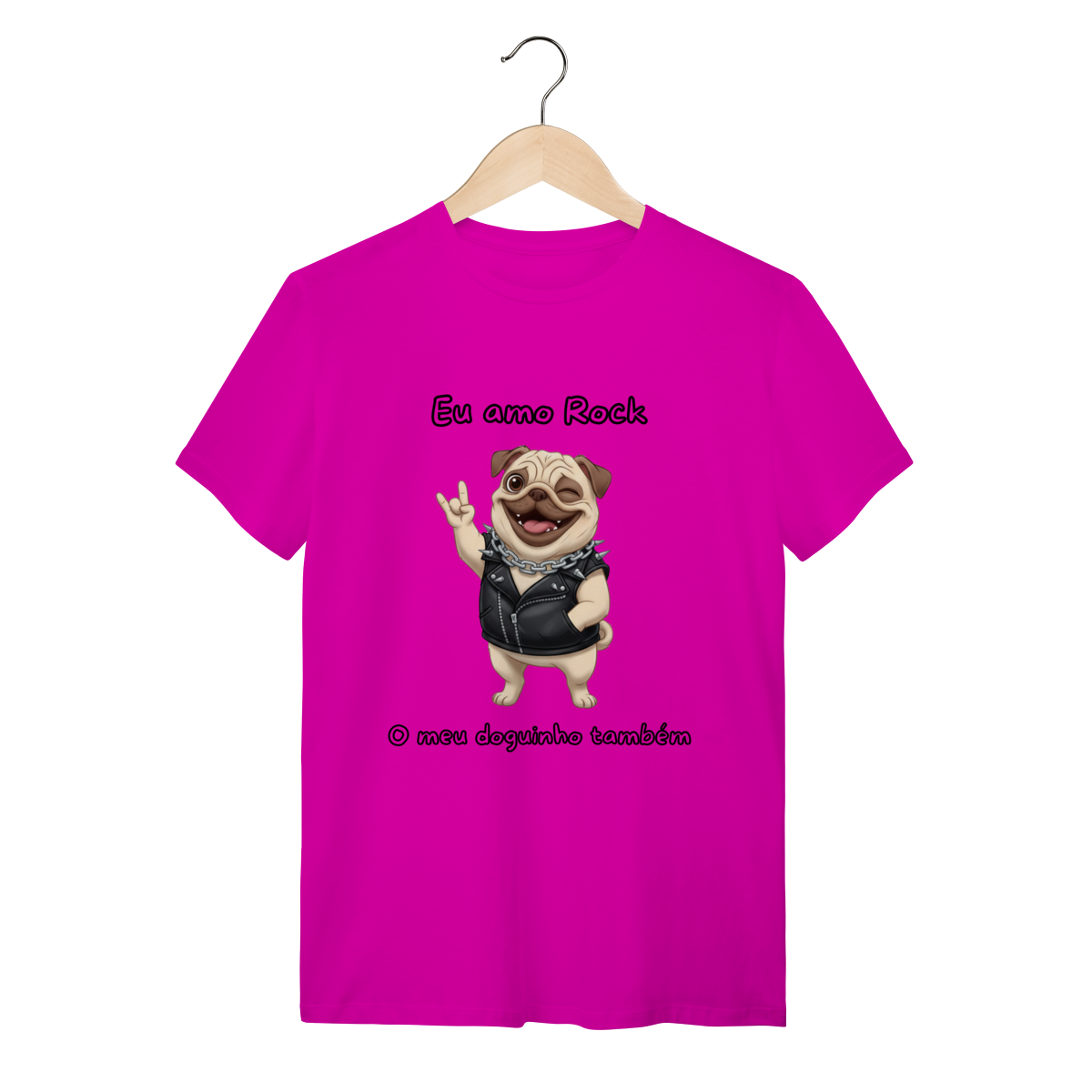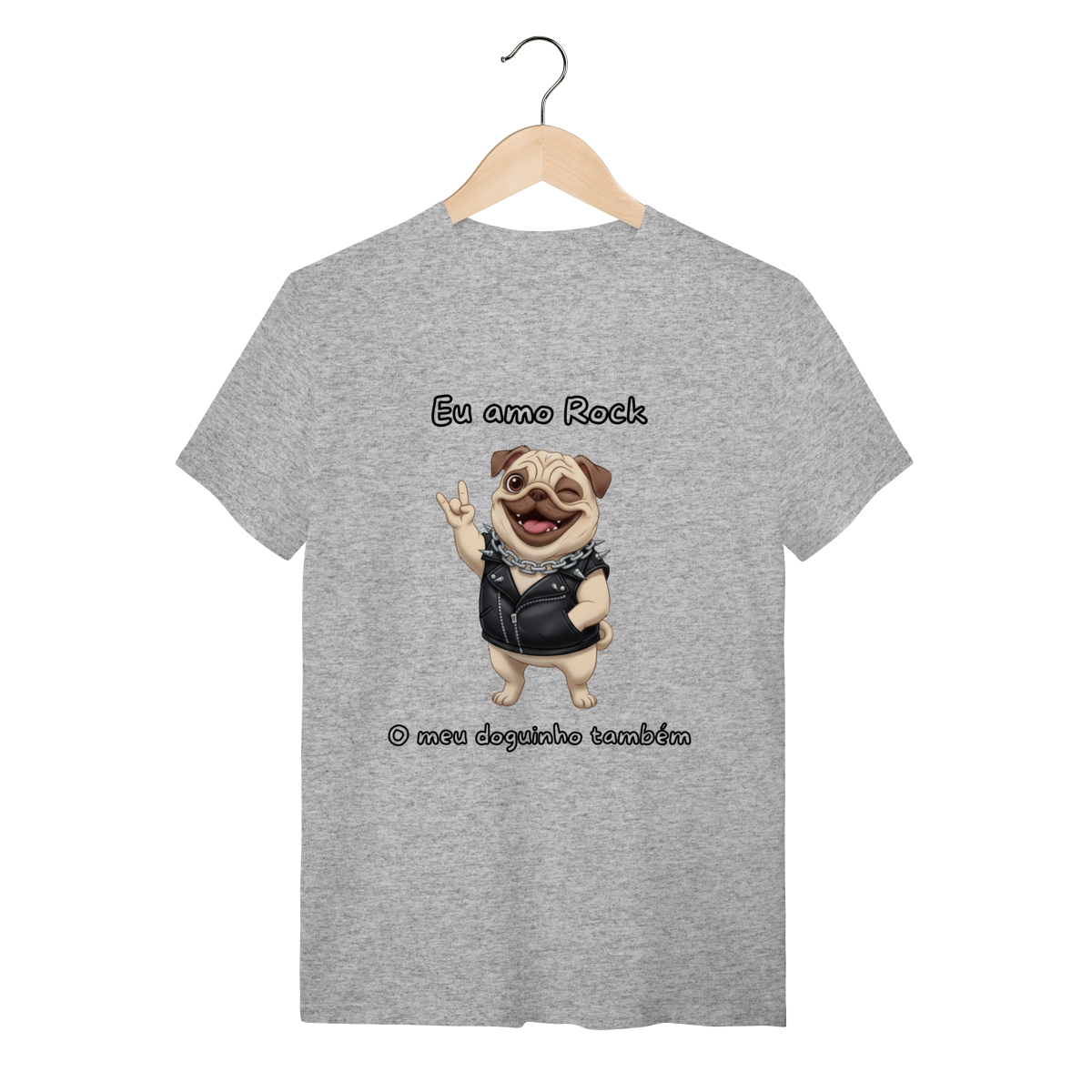 No Petizito, acreditamos que seu pet é um membro da família com ritmo e atitude próprios. Para os "pais de pets" que não abrem mão de um bom riff de guitarra, apresentamos a estampa Pug Rocker. Esta peça exclusiva da nossa coleção Pets Rock traz um Pug cheio de marra, vestindo jaqueta de couro e pronto para o show, celebrando a conexão única entre você e seu fiel companheiro.