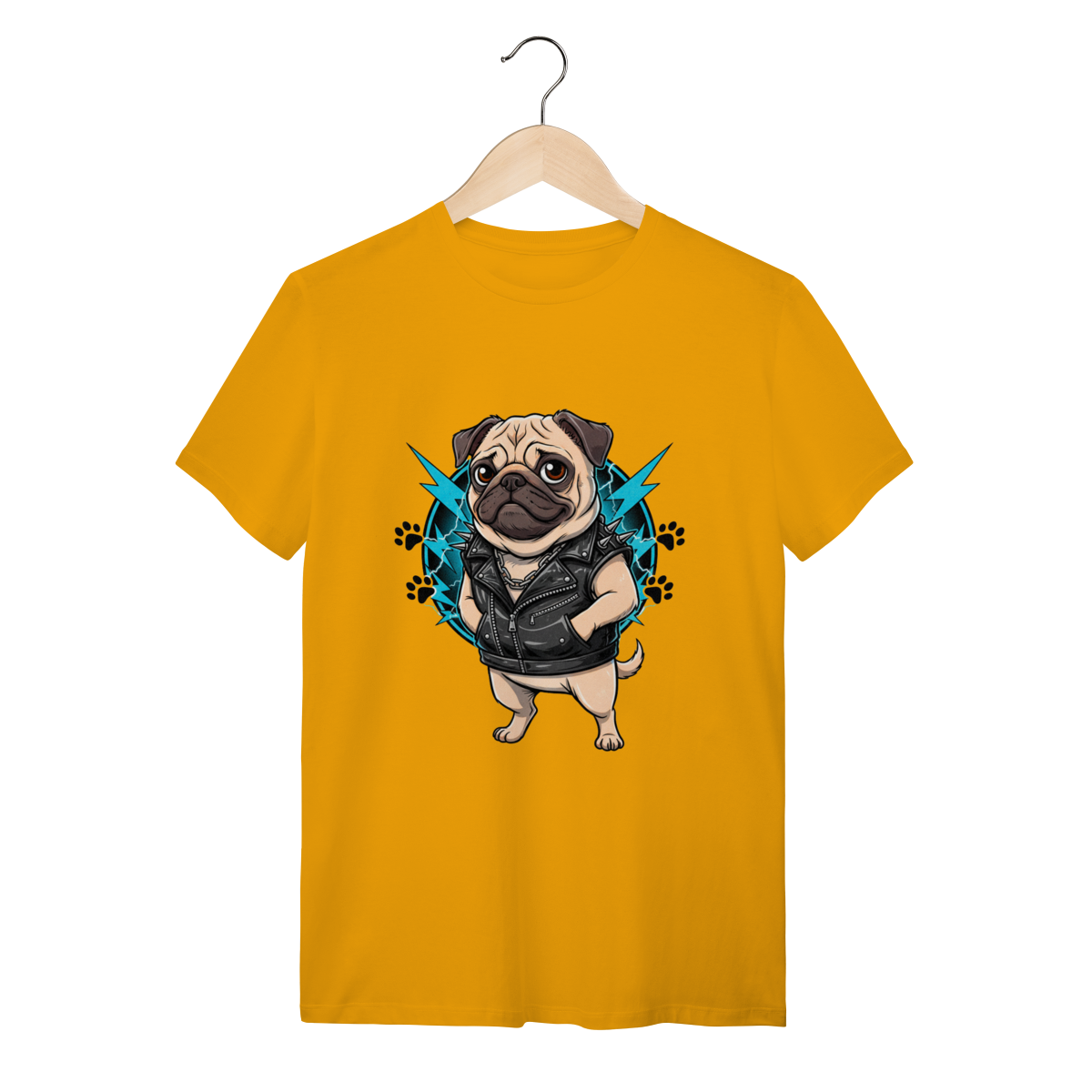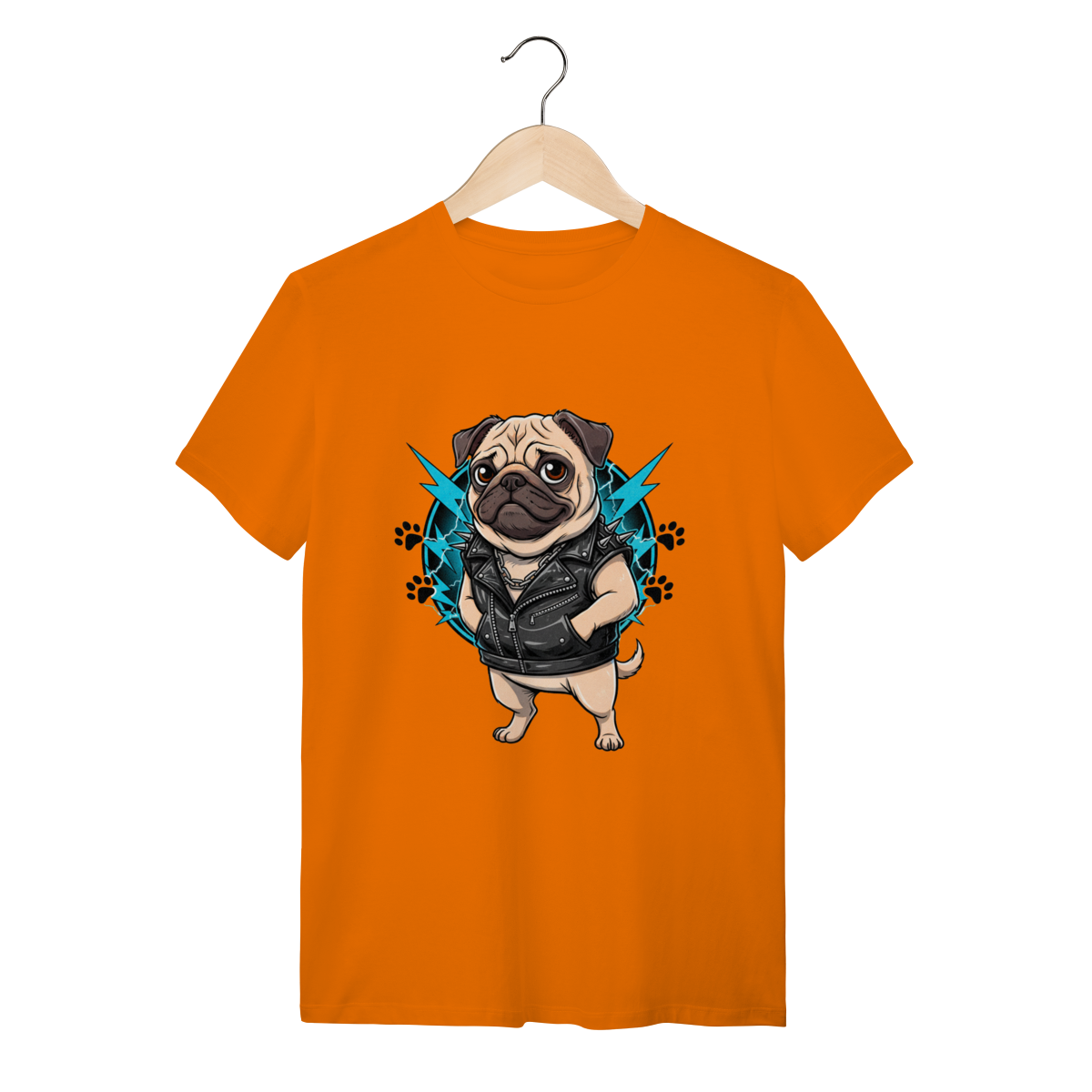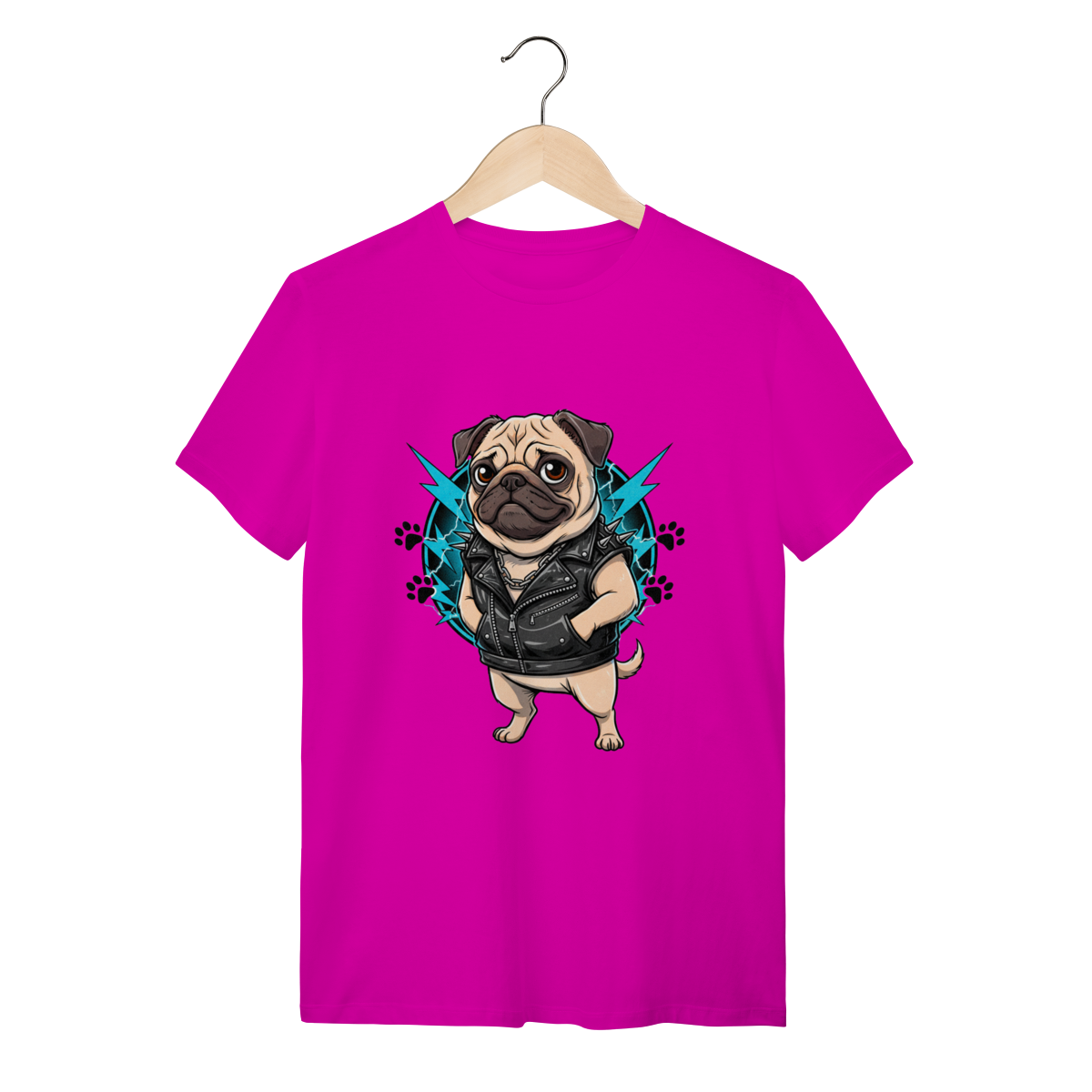 Estilo Único para Pet Lovers: Com uma ilustração exclusiva de um Pug metaleiro vestindo colete de couro com spikes e correntes, esta peça é o presente ideal para donos de cães que buscam uma camiseta personalizada de pet que foge do óbvio. Celebre a conexão entre você e seu melhor amigo com a criatividade que só a Petizito oferece.